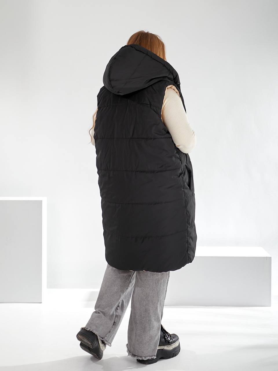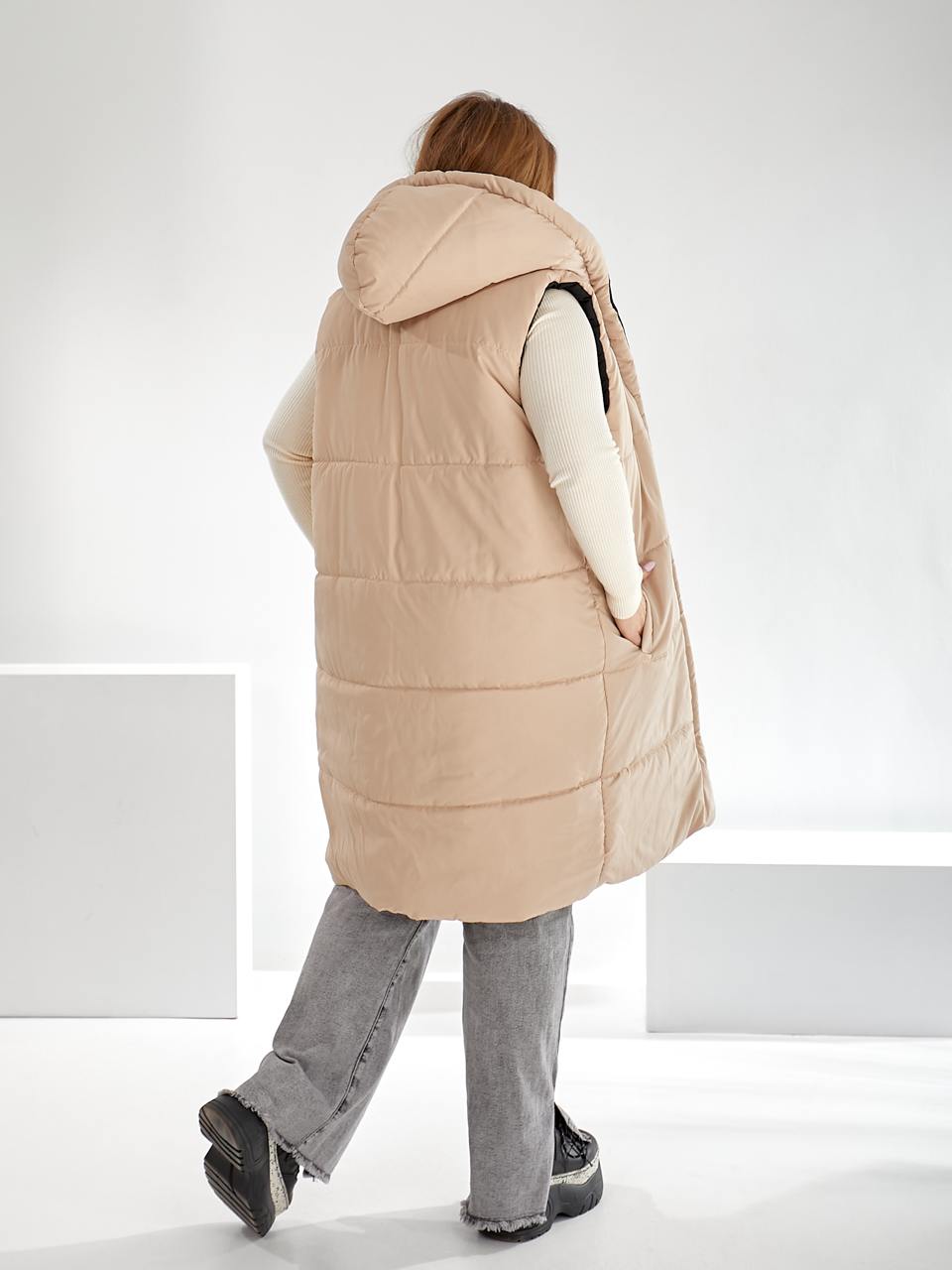 Додаткові характеристики: Сезонність: весна-осінь. Два кольори, два настрої: комбінуйте стриманий класичний дизайн з яскравою або фактурною стороною для різних образів. Легкість та комфорт: м’яка тканина, зручний крій, практичні кишені. замість двох жилеток — одна, але з подвійним стилем! Зріст моделі на фото 170см. На моделі одягнений 50-54 розмір. Параметри моделі на момент зйомки: ОГ: 110 см. ОБ: 116 см.