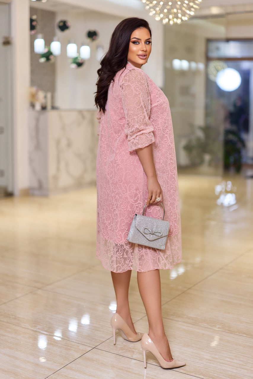 Додаткові характеристики: Елегантна сукня А-силуету на підкладці надає образу легкості та жіночності. Горловина округлої форми, нагрудні виточки спрямовані від лінії пройми до центру, створюючи ідеальне прилягання в області грудей. Рукав втачний, одношовний, низ рукава зібраний на резинці. Таке чудове, повітряне плаття підійде на будь-який випадок. Це плаття-ошатне і святкове, підкреслює вишуканий смак своєї власниці. Зріст моделі на фото 170см. На моделі одягнений 50-52 розмір. Параметри моделі на момент зйомки: ОГ: 110 см. ОБ: 116 см.
