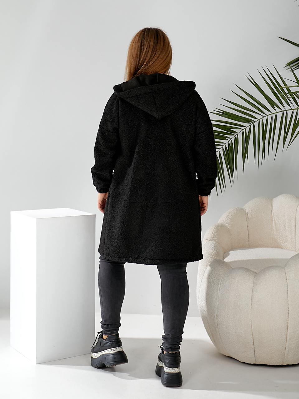 Додаткові характеристики: Стильний, сучасний кардиган із баранчика. Кардиган, поєднує стиль і функціональність. Легкий, але теплий, він огортає вас затишком навіть у найхолодніші дні. Ідеальний вибір для створення стильного образу. Подовжений силует із капюшоном. Зріст моделі на фото, 170см. На моделі одягнений 48-52 розмір. Параметри моделі на момент зйомки: ОГ: 110 см. ОБ: 115 см