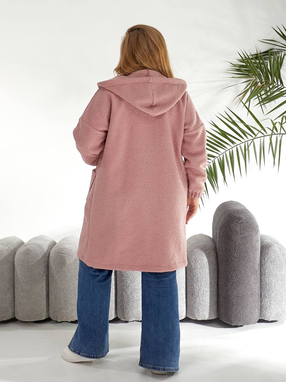 Додаткові характеристики: Стильний, сучасний кардиган із баранчика. Кардиган, поєднує стиль і функціональність. Легкий, але теплий, він огортає вас затишком навіть у найхолодніші дні. Ідеальний вибір для створення стильного образу. Подовжений силует із капюшоном. Зріст моделі на фото, 170см. На моделі одягнений 48-52 розмір. Параметри моделі на момент зйомки: ОГ: 110 см. ОБ: 115 см