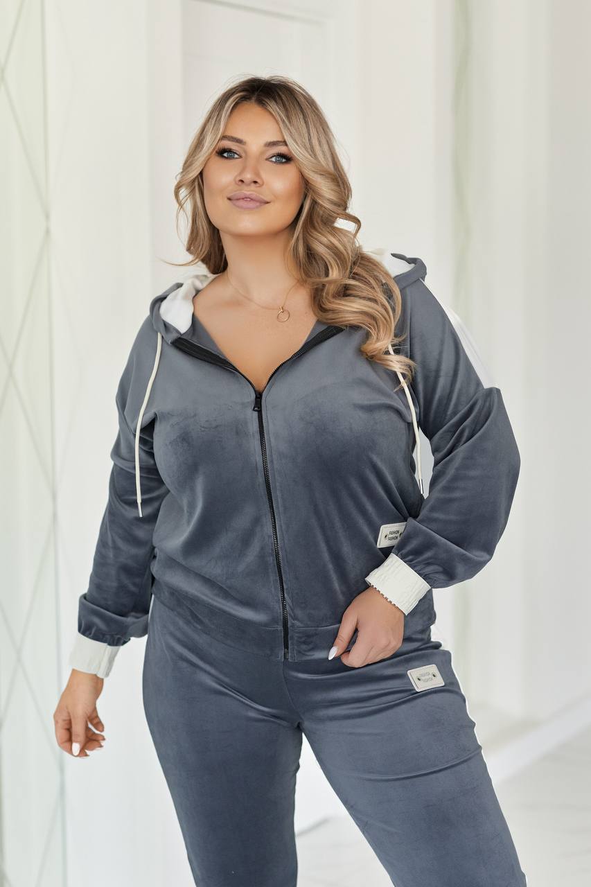 Костюм виконаний із якісної преміум-тканини, приємної до тіла та зручною у носінні. Кофта вільного силуету з подвійним капюшоном та кишенями-листочками, рукави завершені манжетами для комфорту. Штани з високою посадкою та обробленими кишенями мають манжети з резинки преміум, що забезпечують ідеальну посадку. Вільний крій не обмежує рухів і гарантує максимальний комфорт у повсякденному носінні.