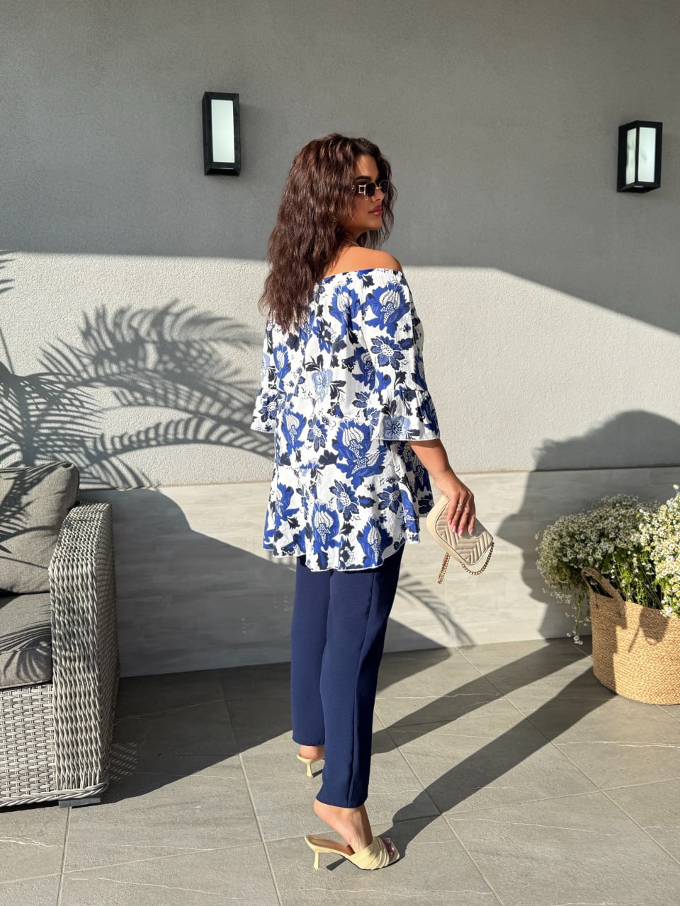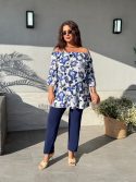- Матеріал: Блуза – льон-бавовна. Штани – американський креп