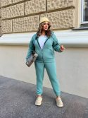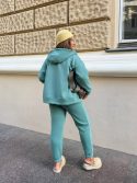 Теплий спортивний костюм із стрейч тринитки на флісі — м’який, комфортний і з гарною розтяжністю. Якісне пошиття з надійної тканини забезпечує ідеальну посадку та стильний вигляд. Худі з подвійним капюшоном на змійці доповнене модними перестрочками, що надають образу сучасності. Штани з високою посадкою на гумці та кишенями у бокових швах дарують зручність у повсякденному носінні. Ідеальний вибір для холодної пори року. На моделях представлений розмір 50–52.