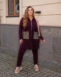 Додаткові характеристики: Прогулянковий костюм. Прекрасний костюм як для прогулянки, так і для повсякденного носіння. Продовження кардигану на змійці з накладними карманами прикрашені стразами. Штани на гумці з карманам На моделі 50-52 розмір Параметри моделі: Обхват грудей – 110 см Обхват талії – 80 см Обхват стегон – 110 см Зріст моделі – 168 см