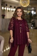 Додаткові характеристики: Ефектний комплект, в якому поєднується краса та якість. Комплектація з блузи та штанів. Ошатна блузка напівприлеглого силуету з тканини з легким елегантним мерехтінням. На поличці нагрудні виточки, виріз горловини акуратної округлої форми. Рукав втачний, вільний, низ прилаштований. Штани злегка звужені донизу. Пояс на резинці. У Вас не буде шансів залишитись непоміченою! На моделі розмір 50-52 Параметри моделі: Обхват грудей – 110 см Обхват стегон – 114 см