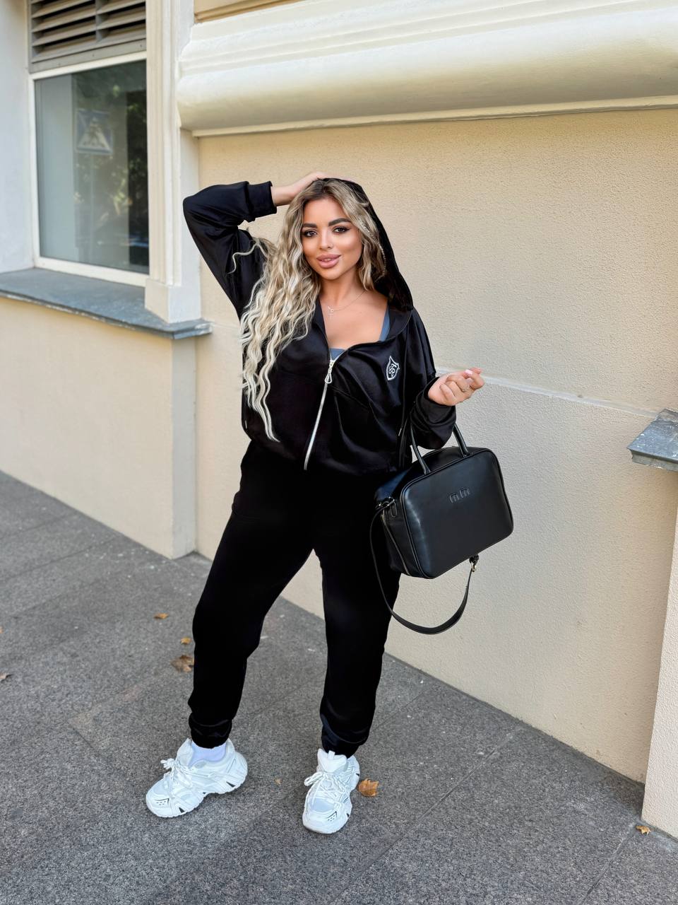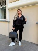 Якісний велюр з доброю розтяжністю — м’який, приємний на дотик та комфортний у носінні. Стильний спортивний костюм із модними перестрочками виглядає сучасно та елегантно. Худі на змійці з подвійним капюшоном додає зручності та захисту від холоду. Штани-джогери з високою посадкою мають зручні кишені у бокових швах, пояс і низ на гумці для ідеальної посадки. Ідеальний вибір для повсякденного стилю та відпочинку. Прання у делікатному режимі за температури 30°С. На моделях представлений розмір 50–52.