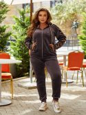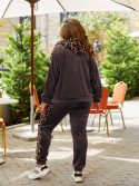 Костюм виконаний із якісної тканини, відмінно носиться та приємний до тіла. Кофта вільного силуету з капюшоном і кишенями-листочками прикрашена стильними вставками з леопарда, рукави завершені манжетами для комфорту. Штани з високою посадкою мають оброблені кишені та манжети по низу. Матеріал — королівський велюр на ХБ основі, що забезпечує м’якість, тепло та довговічність. Вільний крій не обмежує рухів і гарантує максимальний комфорт під час носіння, роблячи костюм ідеальним для повсякденного стилю та відпочинку.