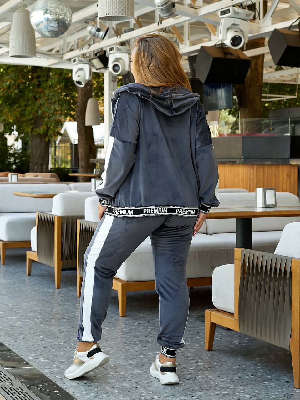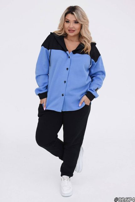 Костюм виконаний із якісної тканини, що відмінно носиться та приємна до тіла. Кофта вільного силуету з капюшоном та кишенями, прикрашена резинкою преміум-класу, рукави завершені манжетами для зручності. Штани з високою посадкою мають оброблені кишені та манжети з резинки преміум, що забезпечує ідеальну посадку. Вільний крій не обмежує рухів, гарантуючи максимальний комфорт під час носіння. Ідеальний вибір для повсякденного використання та активного відпочинку.