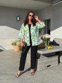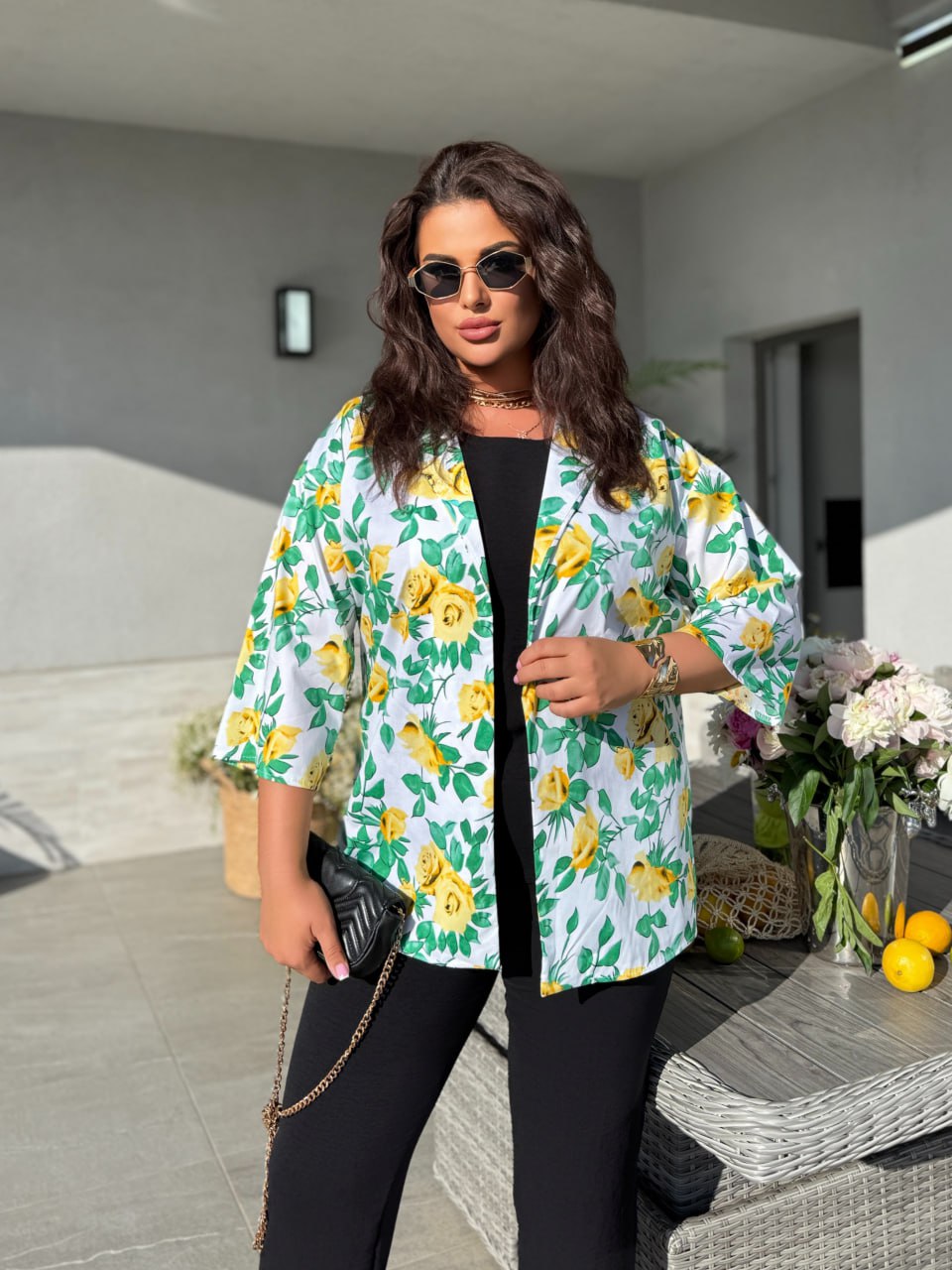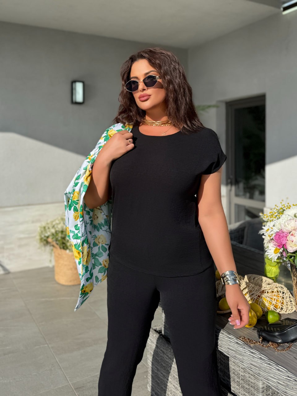 Комплект трійка – це втілення витонченої елегантності та комфорту, створений для тих, хто цінує стиль та вишуканість. Костюм із легкої тканини зачаровує ніжним квітковим принтом. Його прямий силует дарує свободу рухів, а трохи прозора структура додає загадковості та романтичності. Комплект- це ідеальний вибір для тих, хто цінує стиль, комфорт та бездоганний зовнішній вигляд у будь-якій ситуації!