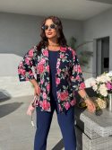 Комплект трійка – це втілення витонченої елегантності та комфорту, створений для тих, хто цінує стиль та вишуканість. Костюм із легкої тканини зачаровує ніжним квітковим принтом. Його прямий силует дарує свободу рухів, а трохи прозора структура додає загадковості та романтичності. Комплект- це ідеальний вибір для тих, хто цінує стиль, комфорт та бездоганний зовнішній вигляд у будь-якій ситуації!
