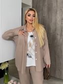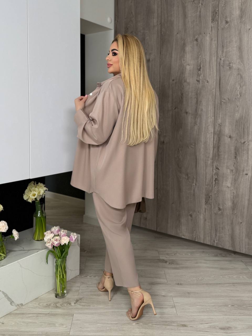 Стильний костюм-трійка: штани фасону ‘мом’, оверсайз сорочка та блуза з софту з якісним накатом. Вдале поєднання сучасного крою та комфортних матеріалів, що підійде для повсякденного використання та створення актуального образу.