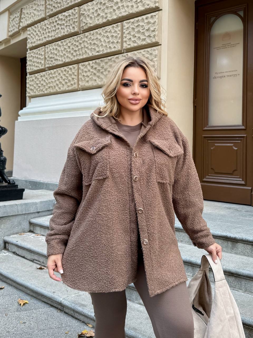 Стильна та надзвичайно тепла сорочка з капюшоном, виконана з якісного еко-баранчика на флісі. М’який і приємний на дотик матеріал чудово зберігає тепло та забезпечує максимальний комфорт у прохолодну пору року. Сорочка застібається на ґудзики, має гарну розтяжність і відмінно сідає по фігурі. Ідеальний вибір для створення затишного та сучасного образу. На моделях представлений розмір 50-52.