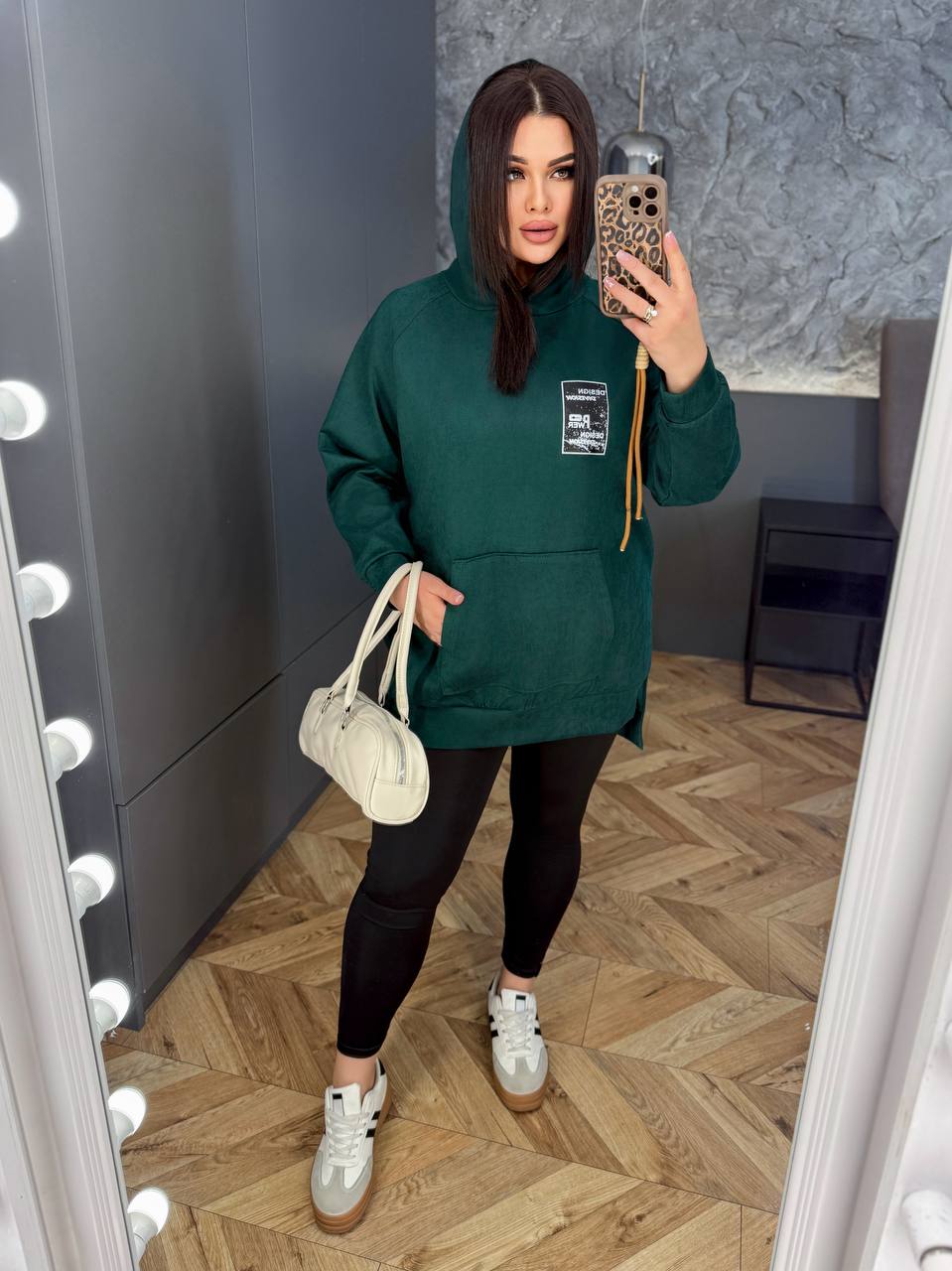 Додаткові характеристики: Стильний костюм для прогулянки ,для спорта ,для комфортного відпочинку.. Худі замш + лосини. Тканина приємна до тіла..Має дуже гарну ростяжність.Висока посадка лосин робить їх дуже зручним,та робить ефект утяжки. Стильний та сучасний спортик буде самою улюбленою річчю у вашому гардеробі.. На моделі 50-52 розмір Параметри моделі: Обхват грудей – 115 см Обхват стегон – 119 см Зріст моделі – 170 см
