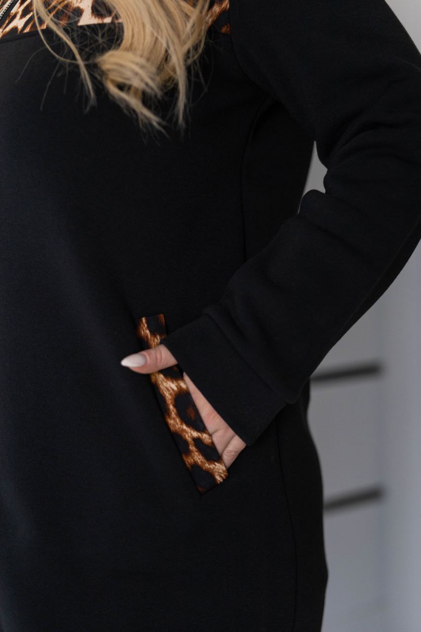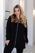 Додаткові характеристики: Теплий, гарний, якісний, костюм для прогулянки так і для повсякденного носіння, відмінний варіант хто хоче виглядати свіжо і яскраво. Зручний костюм зі вставками з леопарда, кардиган продовжений має кишені з капюшоном для зручності має змійку. Штани на манжеті з кишенями ,пояс прошитий на поясній машинці На моделі 52-54 розмір Параметри моделі: Обхват грудей – 115 см Обхват талії – 89 см Обхват стегон – 119 см Зріст моделі – 170 см
