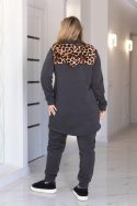 Додаткові характеристики: Теплий, гарний, якісний, костюм для прогулянки так і для повсякденного носіння, відмінний варіант хто хоче виглядати свіжо і яскраво. Зручний костюм зі вставками з леопарда, кардиган продовжений має кишені з капюшоном для зручності має змійку. Штани на манжеті з кишенями ,пояс прошитий на поясній машинці На моделі 52-54 розмір Параметри моделі: Обхват грудей – 115 см Обхват талії – 89 см Обхват стегон – 119 см Зріст моделі – 170 см