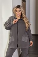 Додаткові характеристики: Чудовий костюм для прогулянки так і для повсякденного носіння, відмінний варіант хто хоче виглядати свіжо і яскраво. Кофточка прикрашена стразами, з двома накладними кишенями на блискавці ,капюшон подвійний. Штани с кишенями, пояс прошит на поясній машинці. Зріст моделі на фото, 170см. На моделі одягнений 52-54 розмір. Параметри моделі на момент зйомки: ОГ: 110 см. ОБ: 115 см