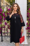 Додаткові характеристики: Ефектна, красива сукня напівприлеглого силуету. Виріз горловини округлої форми. Спинка з однотонного трикотажу із центральним швом та застібкою гудзиком. Просто бомбове плаття, що поєднує у собі дві різні фактури тканини. Відмінний варіант для повсякденних образів, який сміливо можна носити на роботу. Класичний колір, лаконічний силует – завжди доречний, ефектно підібрані аксесуари і ви виглядаєте незрівнянно! На моделі одягнений 50-52 розмір. Параметри моделі на момент зйомки: ОГ: 110 см. ОТ: 93 см ОБ: 120 см.