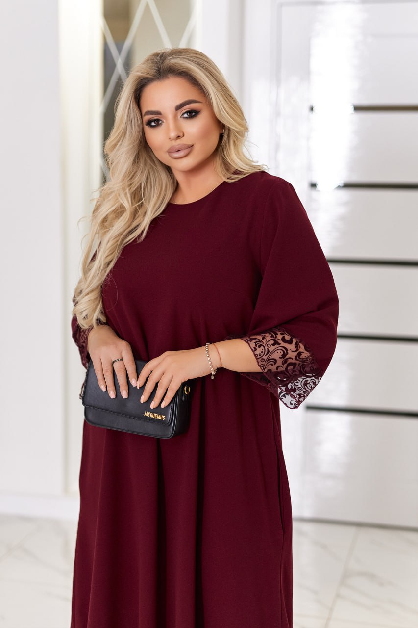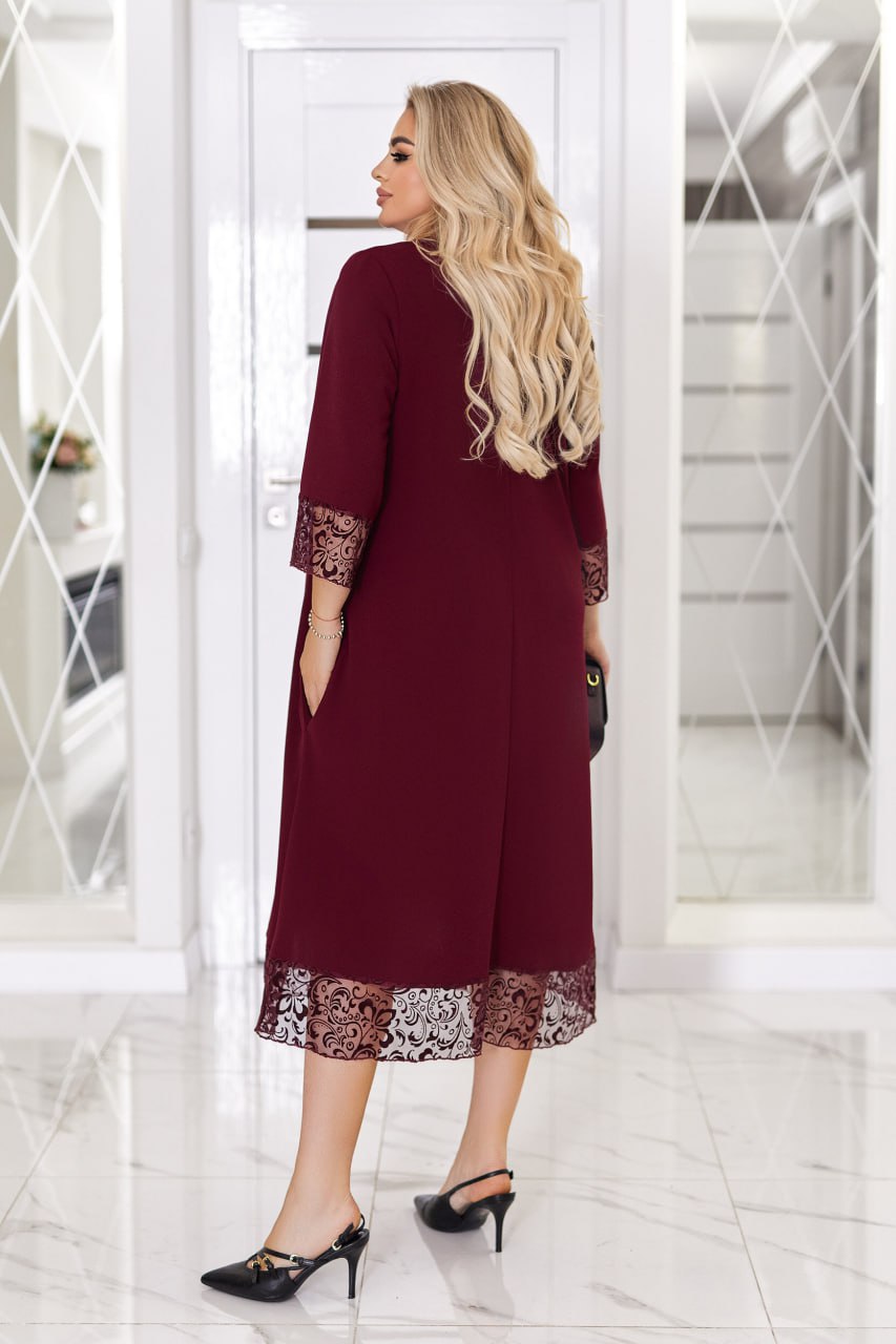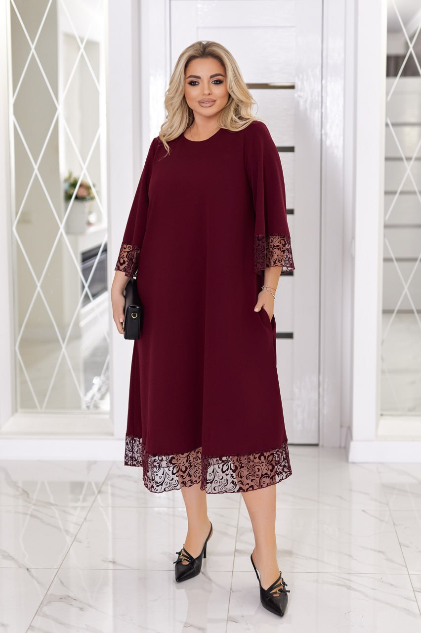 Елегантна жіноча сукня в насичених кольорах виконана з м’якої тканини, пропонуючи виняткове поєднання комфорту та стилю. Дизайн доповнений широкою сітчастою вставкою. Довжина сукні до колін підкреслює легкість виробу. Ця сукня ідеально підійде для різних заходів, підкреслюючи вишуканість та жіночність образу.