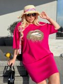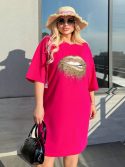 Легка та зручна літня сукня — ідеальний вибір для теплих днів! Виготовлена з якісного турецького куліру, ця модель вирізняється акуратним пошивом та приємною до тіла тканиною. Має середню розтяжність, що забезпечує комфорт у щоденному носінні. Доповнена стильними, яскравими стразами преміум якості та лаконічним принтом.