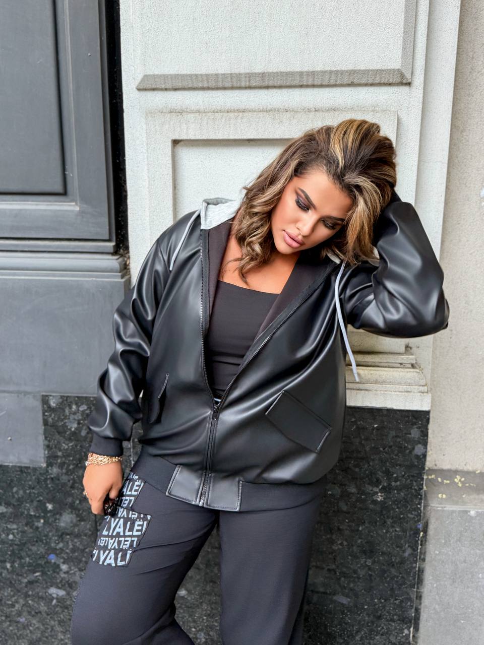 Стильний бомбер з еко-шкіри на байці – ідеальне поєднання практичності та сучасного міського стилю. М’яка підкладка забезпечує комфорт і тепло в прохолодну погоду, а якісна еко-шкіра виглядає ефектно та добре тримає форму. Модель має зручну довжину 65–70 см, що гармонійно підкреслює силует, та рукав 75 см для комфортної посадки. Бомбер доповнений функціональним капюшоном, який додає образу спортивного настрою та захищає від вітру. Представлений у стильних відтінках: класичний чорний, моко та чорний із сірим капюшоном – універсальні варіанти для щоденних образів. Ідеально поєднується з джинсами, спортивними костюмами або базовими сукнями, створюючи актуальний та впевнений вигляд на кожен день.