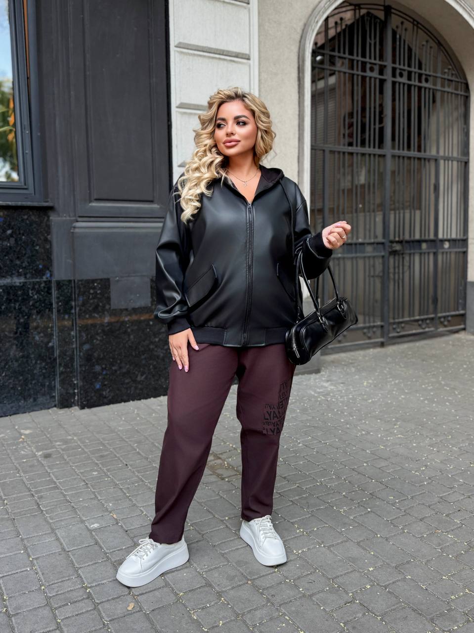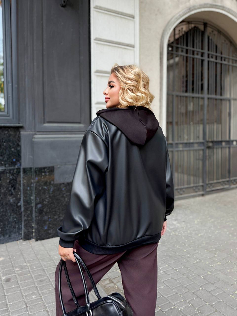 Стильний бомбер з еко-шкіри на байці – ідеальне поєднання практичності та сучасного міського стилю. М’яка підкладка забезпечує комфорт і тепло в прохолодну погоду, а якісна еко-шкіра виглядає ефектно та добре тримає форму. Модель має зручну довжину 65–70 см, що гармонійно підкреслює силует, та рукав 75 см для комфортної посадки. Бомбер доповнений функціональним капюшоном, який додає образу спортивного настрою та захищає від вітру. Представлений у стильних відтінках: класичний чорний, моко та чорний із сірим капюшоном – універсальні варіанти для щоденних образів. Ідеально поєднується з джинсами, спортивними костюмами або базовими сукнями, створюючи актуальний та впевнений вигляд на кожен день.