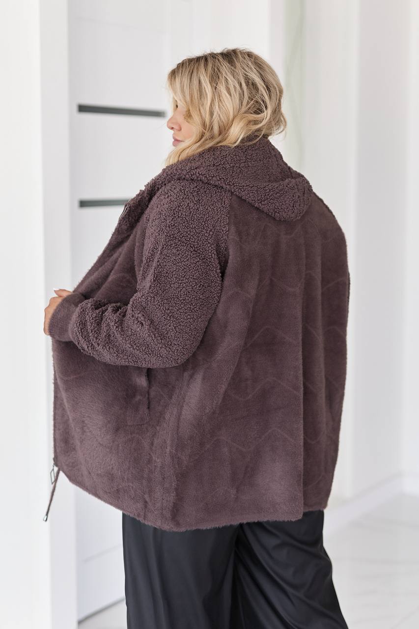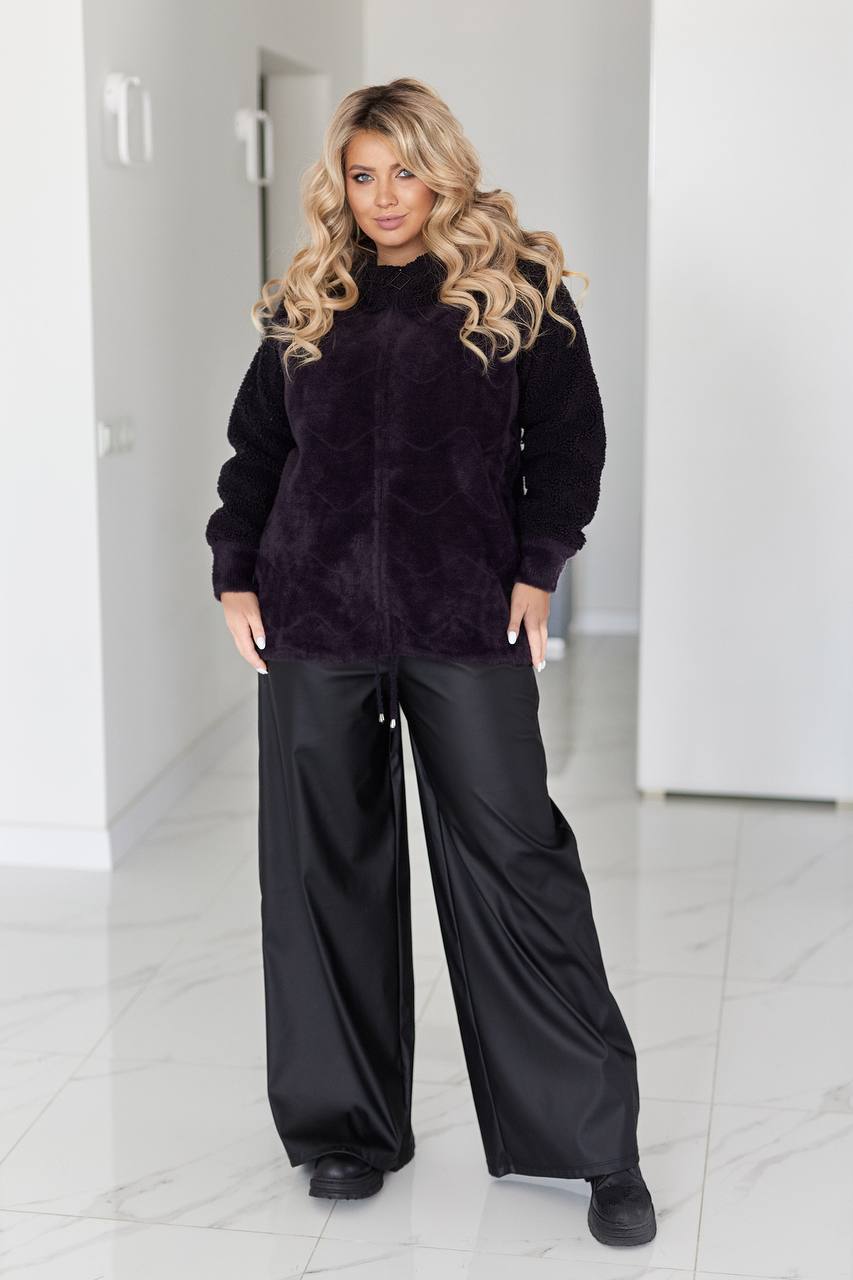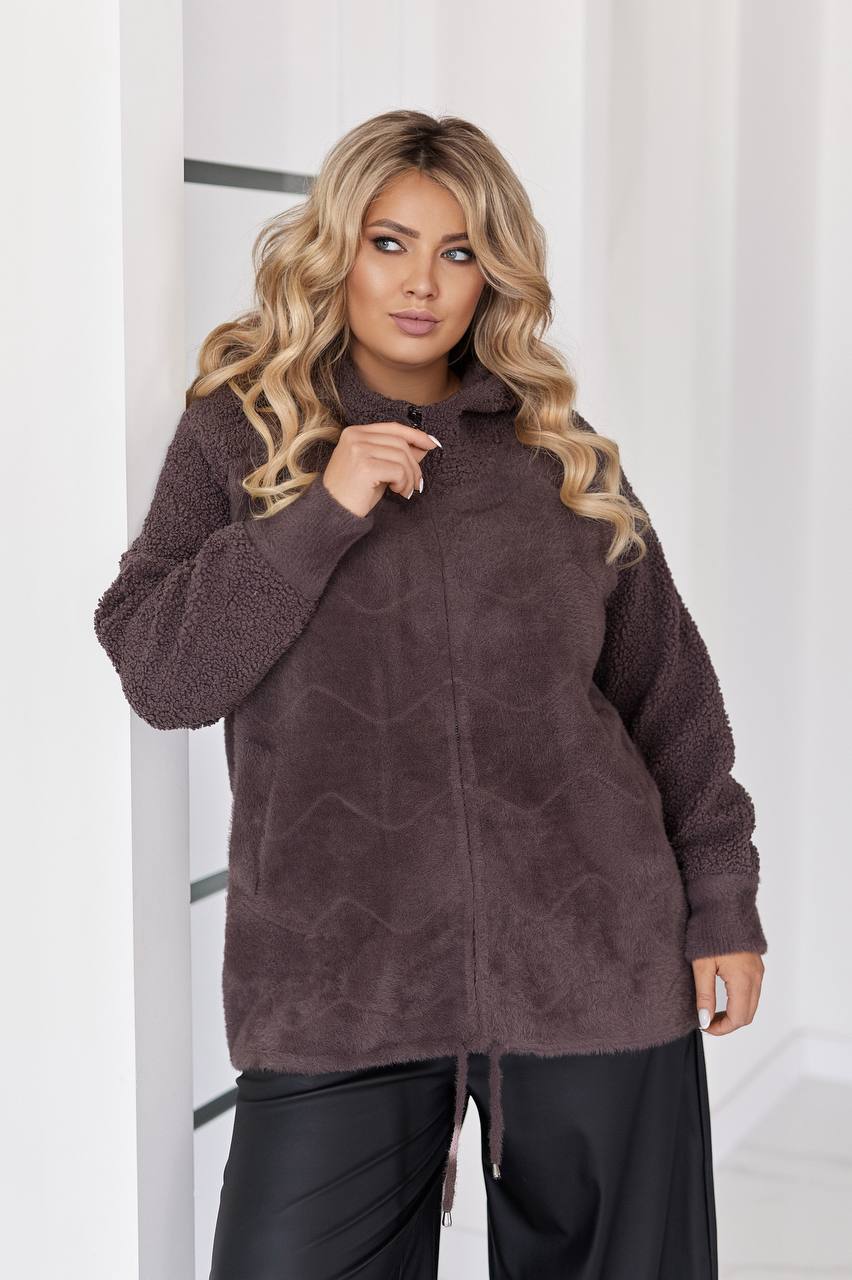 Стильне комбіноване пальто створене для комфорту та затишку в прохолодну пору року. Основна частина моделі виконана з м’якої та теплої альпаки, яка добре зберігає тепло й приємна на дотик. Рукави та капюшон оздоблені фактурним еко-барашком, що додає виробу об’ємності та сучасного характеру. Зручна довжина 65 см робить пальто практичним для щоденного носіння та активного способу життя. Вільний силует забезпечує комфортну посадку і не обмежує рухів. Модель представлена в актуальних кольорах: баклажан, мокко, коричневий та м’ятний, що дозволяє легко підібрати варіант під індивідуальний стиль. Пальто гармонійно поєднується з базовим гардеробом, створюючи теплий і стильний образ на кожен день.